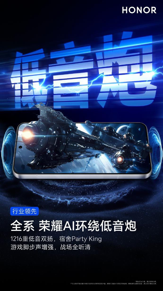 此外,全系新机还标配荣耀鸿燕通信系统、荣耀环绕低音炮 2.0(双 1216 对称扬声器),并支持 IP68/69/69K 防尘防水。